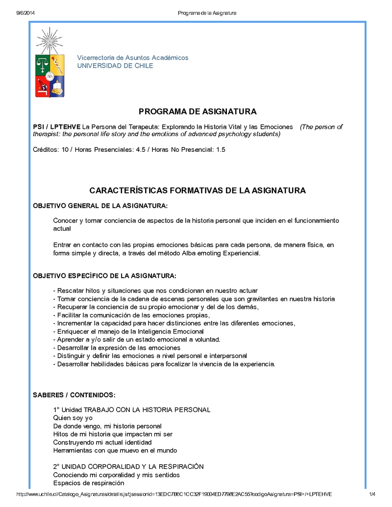 PS02040-1 La Persona del Terapeuta: Explorando la Historia Vital y las Emociones 2014, Segundo Semestre