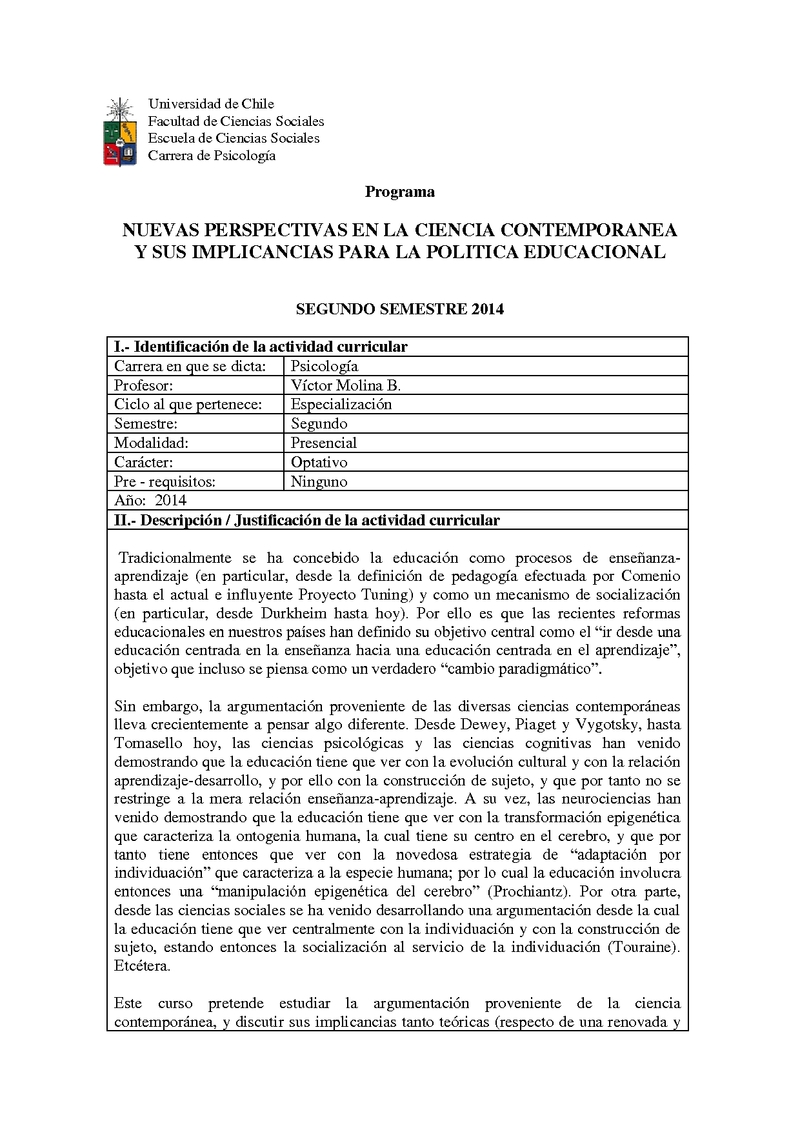 PS02066-1 Nuevas Perspectivas en la Ciencia Contemporánea y sus Implicancias para la Política 2014, Segundo Semestre