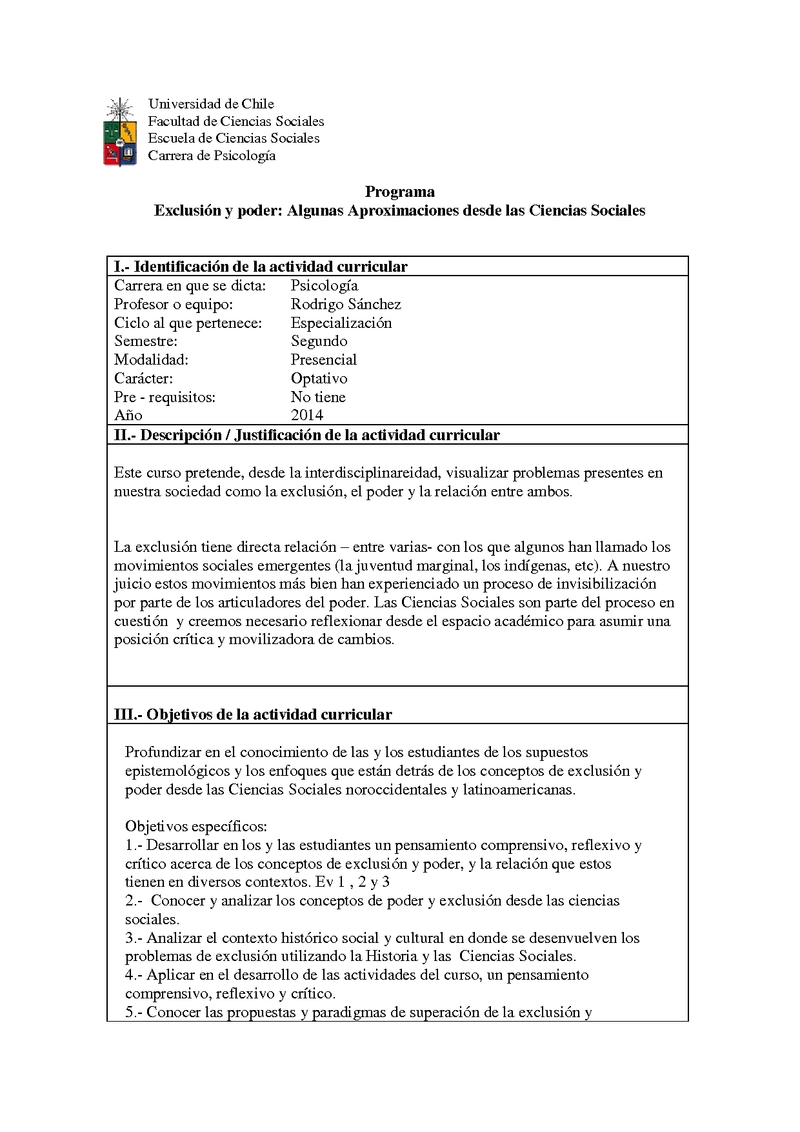 PS02074-1 Exclusión y Poder: Algunas Aproximaciones desde las Ciencias Sociales 2014, Segundo Semestre