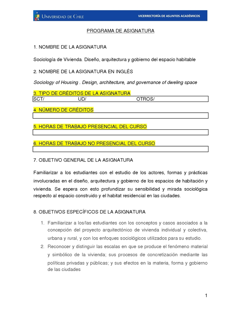 SO01071-1 Sociología de Habitación y Vivienda. Diseño, Arquitectura y Gobierno del Espacio Habitable 2015, Segundo Semestre