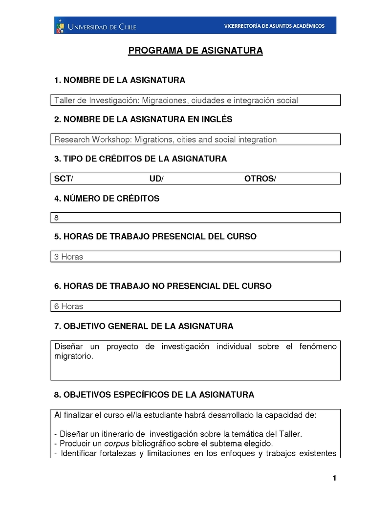 AN01154-1 Taller de Investigación: Migraciones, ciudades e integración social 2016, Segundo Semestre