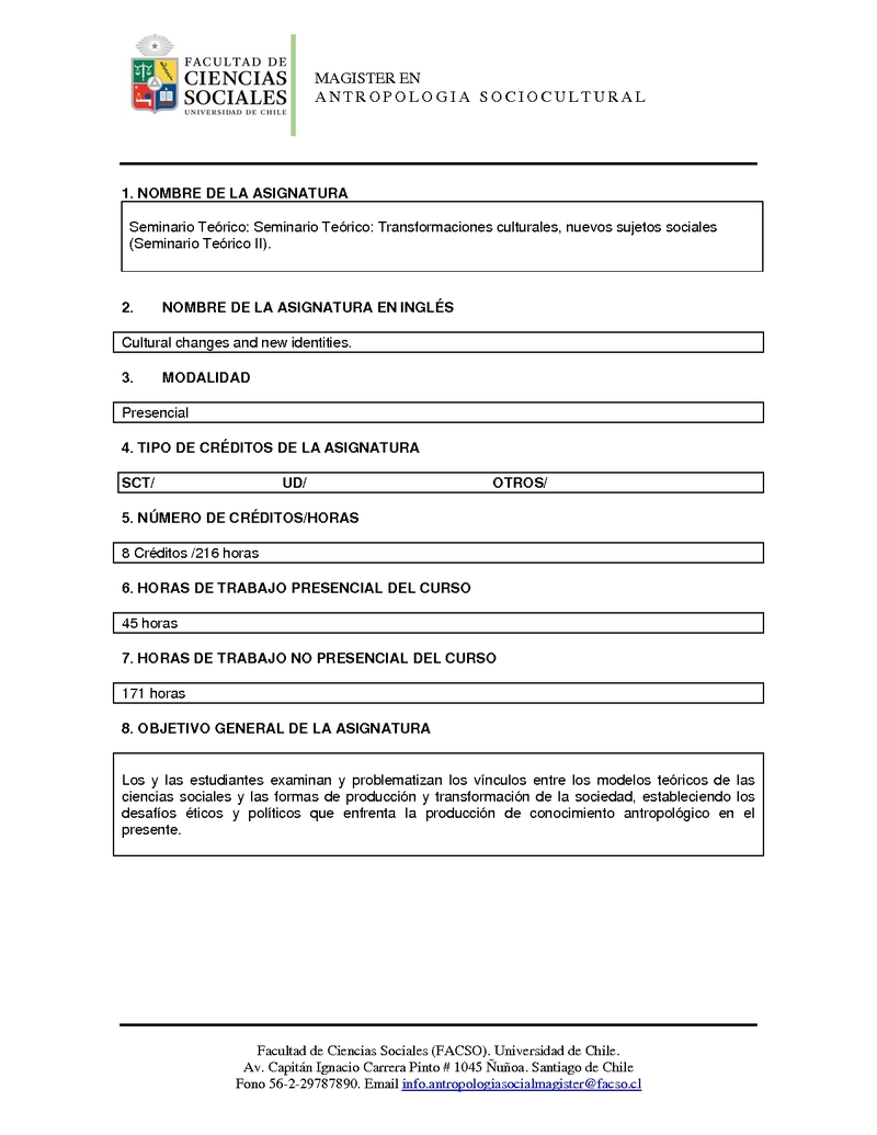 MASC1022-1 Seminario Teórico: Transformaciones Culturales, nuevos sujetos sociales 2017, Segundo Semestre