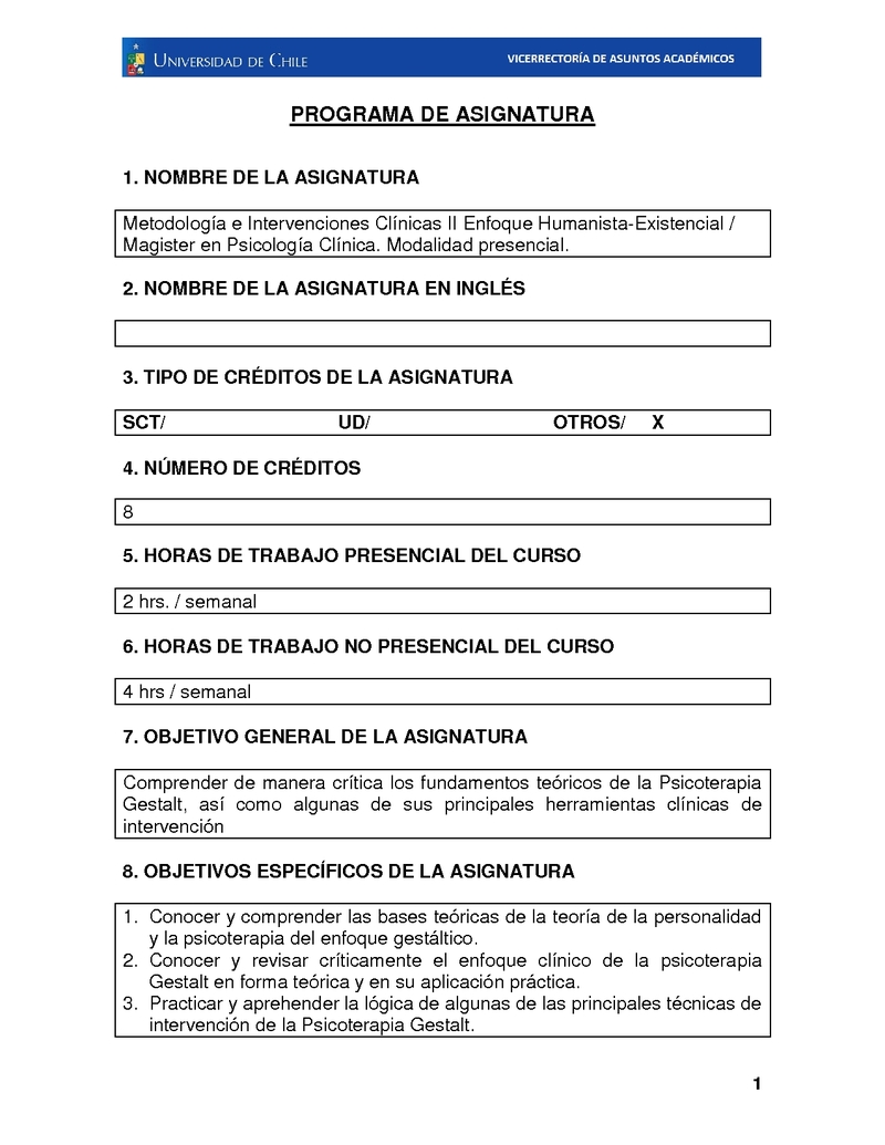 PA017-1 Metodologías e Intervenciones Clínicas II (Línea Humanista-existencial) 2017, Segundo Semestre