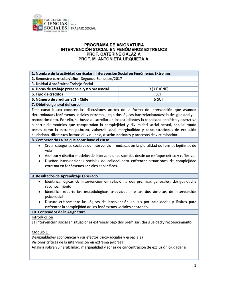 TS01025-1 Núcleo I + D - Disciplinar II: Intervención en Fenómenos Sociales Extremos 2017, Segundo Semestre