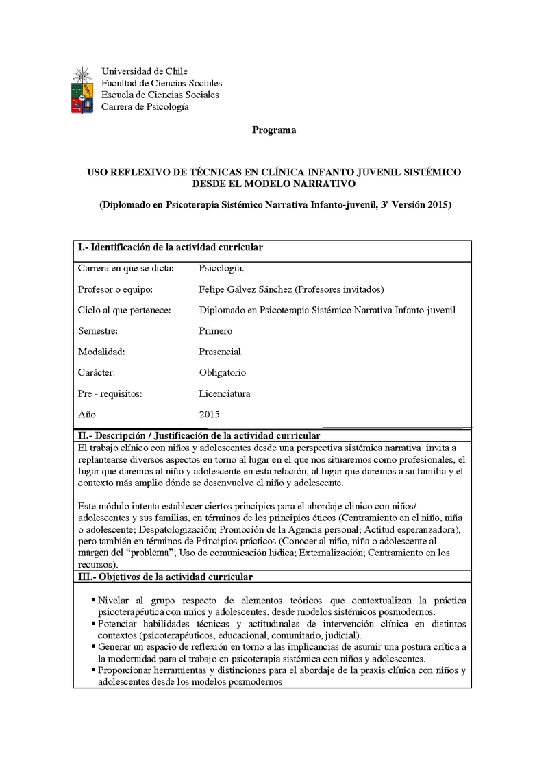DP03072-1 Uso Reflexivo de Técnicas desde el Enfoque Narrativo Sistémico (desde el Equipo Infanto-Juvenil - eQtasis) 2018, Primer Semestre