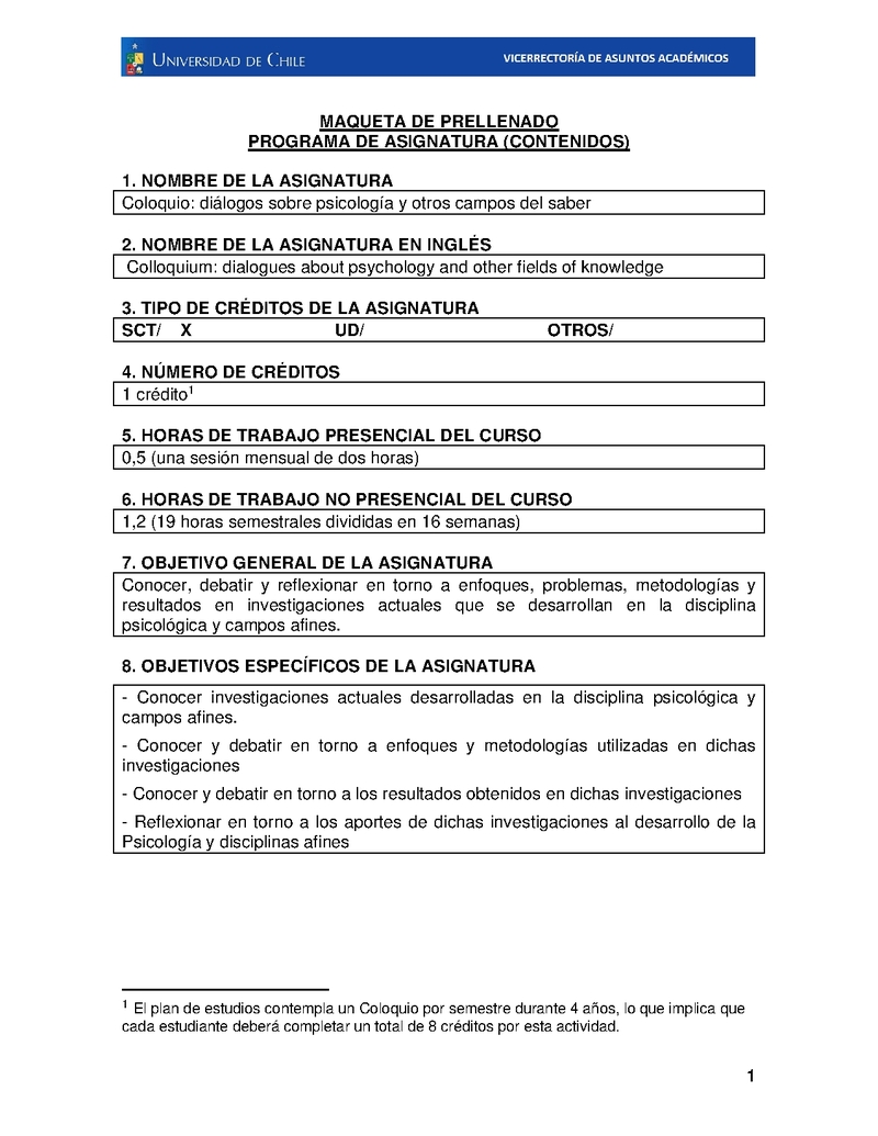DPSIC015-1 Coloquio: Diálogos sobre Psicología y otros campos del saber 02/2018 2018, Segundo Semestre