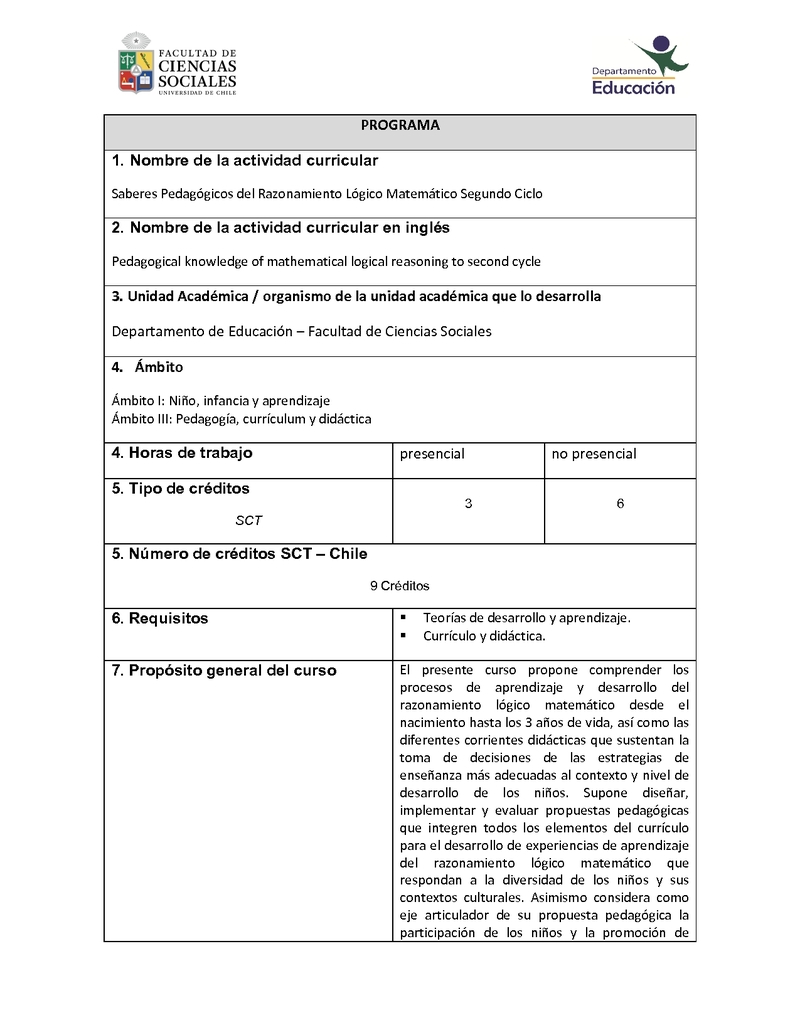 PV00035-1 Saberes Pedagógicos del Razonamiento Lógico Matemático, 2 Ciclo 2018, Segundo Semestre