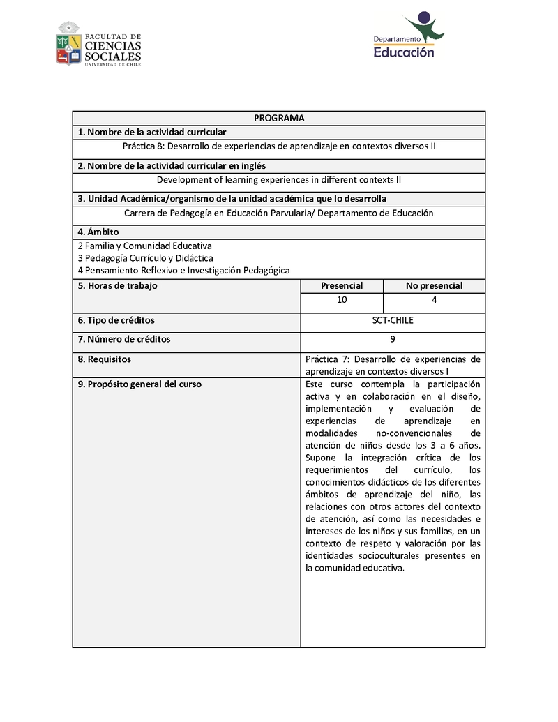 PV00038-1 Práctica 8: Desarrollo de Experiencias de Aprendizaje en Contextos Diversos II 2018, Segundo Semestre