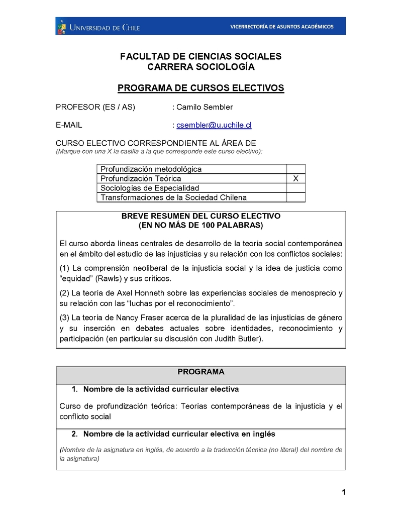 SOC01057-1 Electivo de Profundización Teórica - Teorías Contemporáneas de la Injusticia y el Conflicto Social 2019, Segundo Semestre