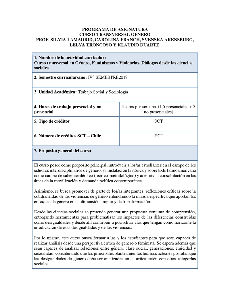 TRNSV0003-1 Género, Feminismos y Violencias. Diálogos desde las Ciencias Sociales 2019, Segundo Semestre