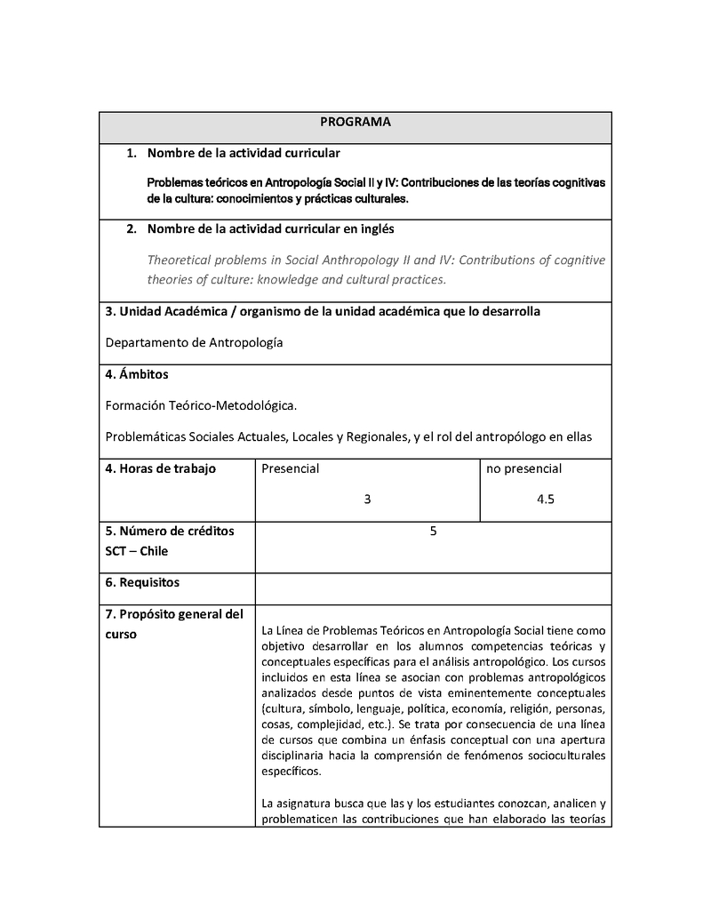 ANT00152-1 Problemas Teóricos en Antropología social II y IV: Contribuciones de las Teorías Cognitivas de la Cultura, conocimientos y prácticas Culturales 2022, Segundo Semestre