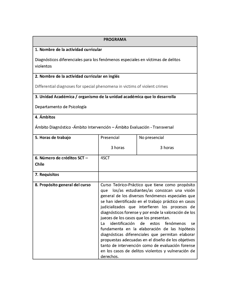Diagnósticos Diferenciales para los Fenómenos Especiales en Víctimas de Delitos Violentos