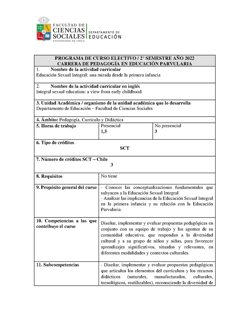 PV00068-1 Electivo Licenciatura: Educación Sexual Integral: Una mirada desde la primera infancia 2022, Segundo Semestre