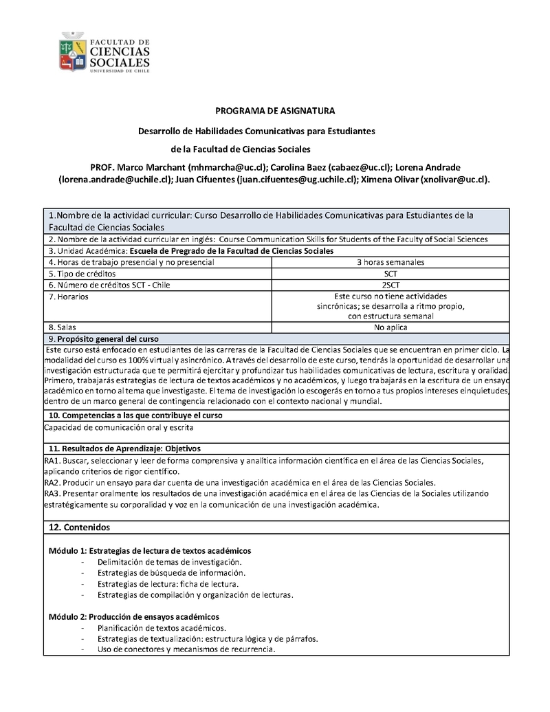 TRNSV0007-2 Desarrollo de Habilidades Comunicativas para Estudiantes de la Facultad de Ciencias Sociales 2023, Primer Semestre