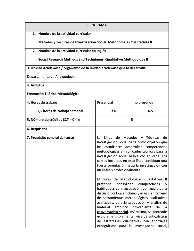 ANT00085-1 Métodos y Técnicas de Investigación Social IV: Métodos Cualitativos II 2023, Segundo Semestre