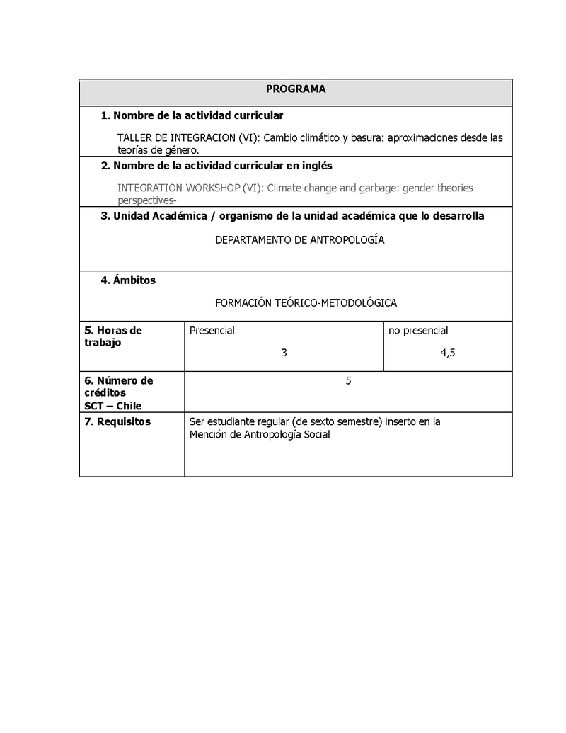 ANT00161-1 Taller de Integración Cambio Climático y Basura: aproximaciones desde las teorías de género 2023, Segundo Semestre