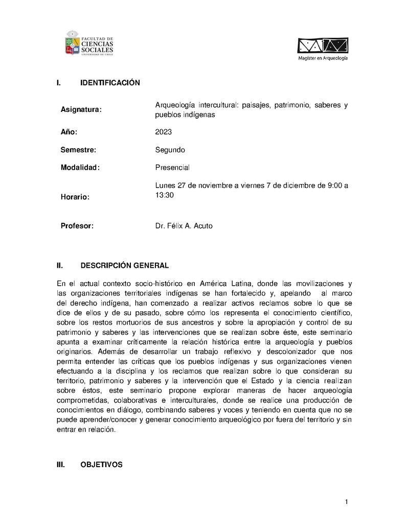 MARQ9060-1 Arqueología Intercultural: Paisajes, Patrimonios, Saberes y Pueblos Indígenas 2023, Segundo Semestre