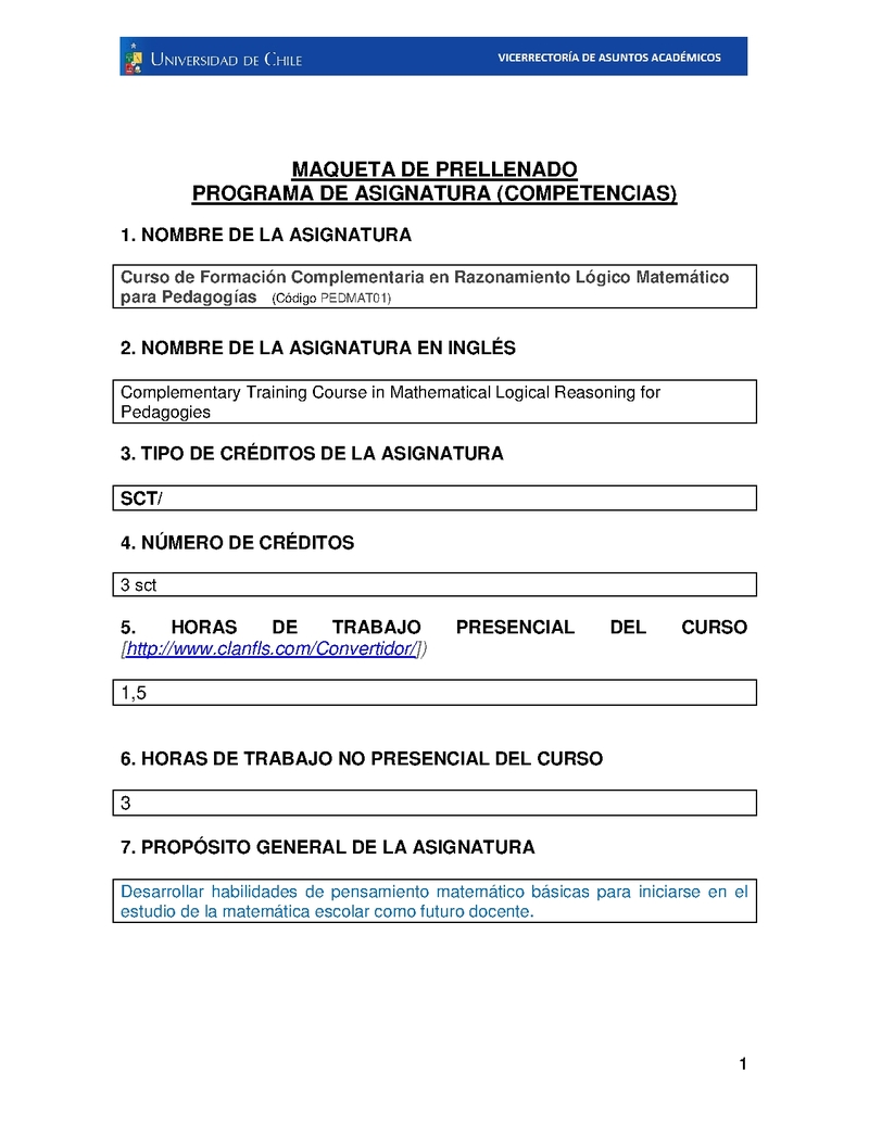 Curso de Formación Complementaria en Razonamiento Lógico Matemático para Pedagogías”