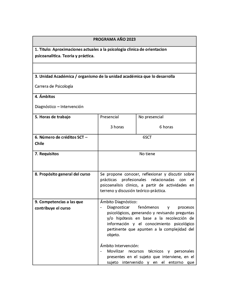 PSICLDEP10-1 Aproximaciones Actuales a la Psicología Clínica de Orientación Psicoanalítica. Teoría y Práctica 2023, Segundo Semestre