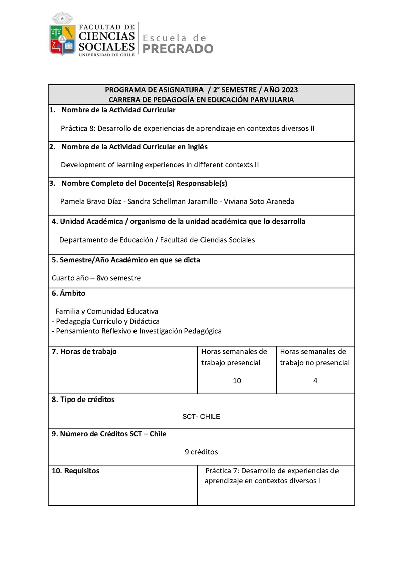 PV00038-1 Práctica 8: Desarrollo de Experiencias de Aprendizaje en Contextos Diversos II 2023, Segundo Semestre