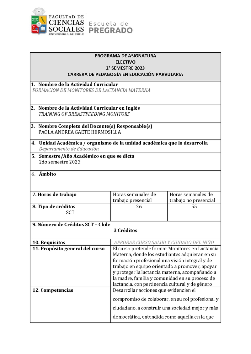 PV00083-1 Electivo de Licenciatura: Formación de Monitores de Lactancia Materna 2023, Segundo Semestre