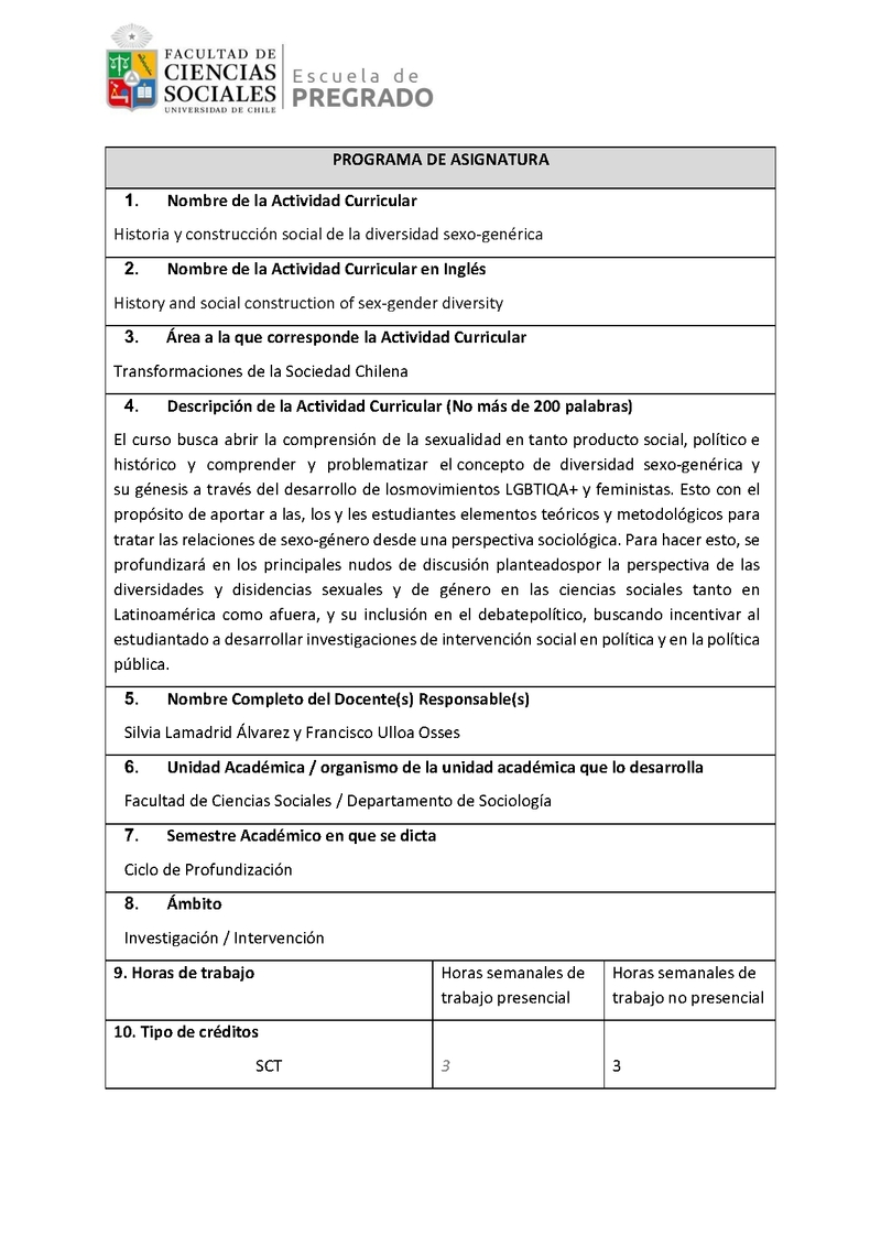 SOC01106-1 Electivo - Historia y Construcción Social de la Diversidad Sexo-Genérica 2023, Segundo Semestre
