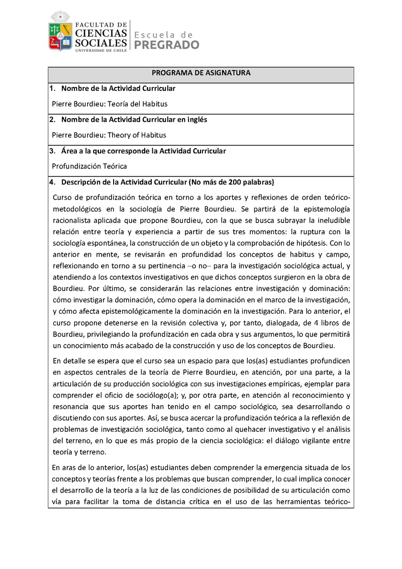 SOC01212-1 Electivo de Profundización Teórica - Pierre Bourdieu: Teoría del Habitus 2023, Segundo Semestre
