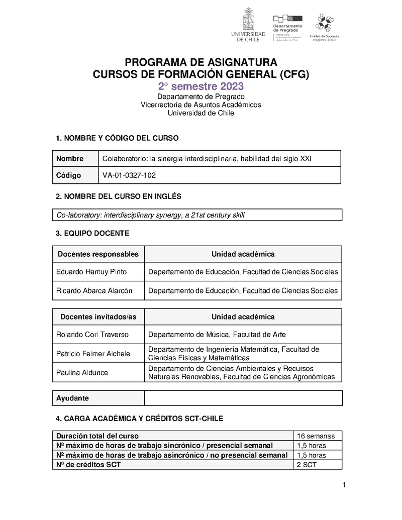 VA-01-0327-102-1 Colaboratorio: la sinergia interdisciplinaria, habilidad del siglo XXI 2023, Segundo Semestre