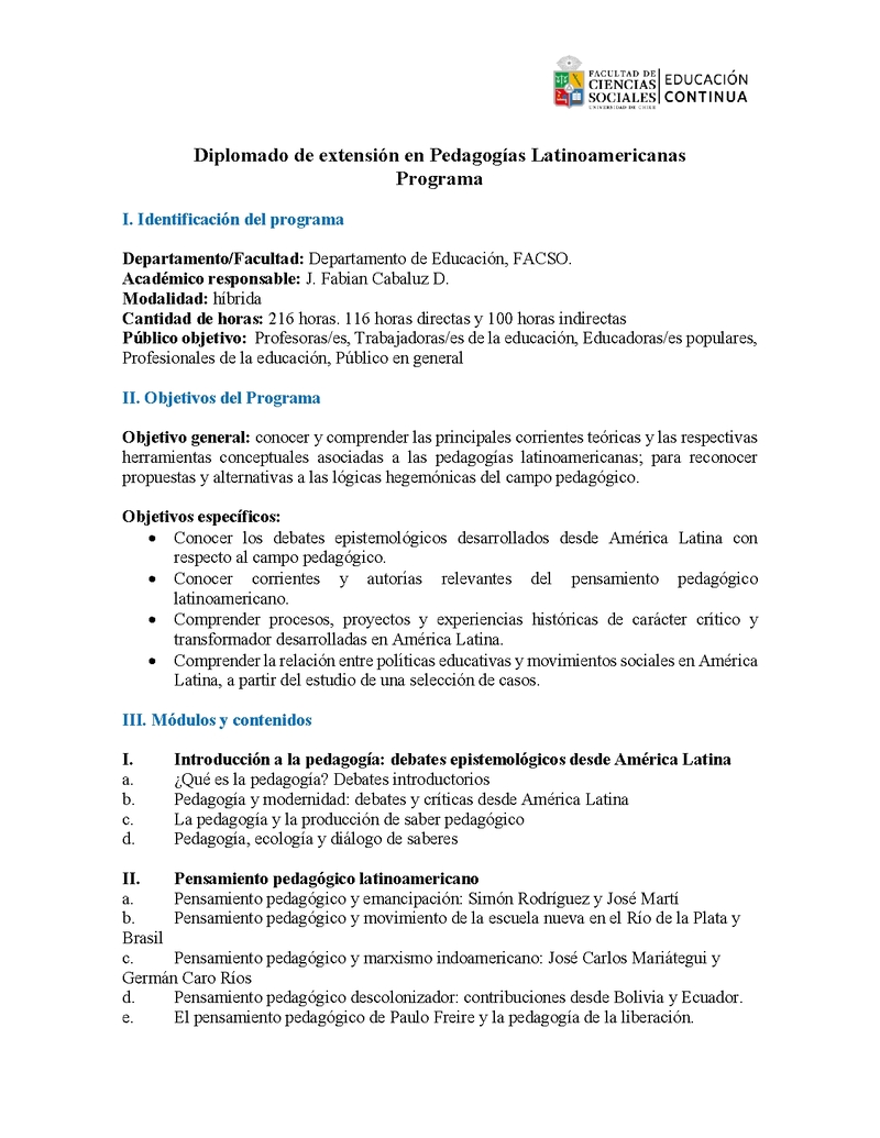 | Descripción | Programa Diplomado en Pedagogías Latinoamericanas | |