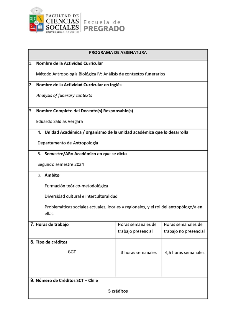 ANT00137-1 Método Antropología Biológica IV: Análisis de Contextos Funerarios 2024, Segundo Semestre