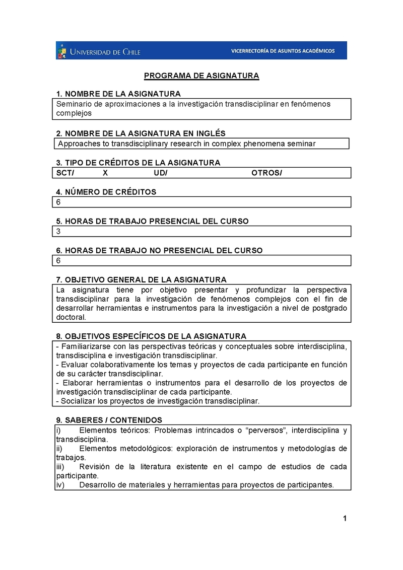 DOEDUE06-1 Electivo: Seminario de aproximaciones a la investigación transdisciplinar en fenómenos complejos 2024, Segundo Semestre