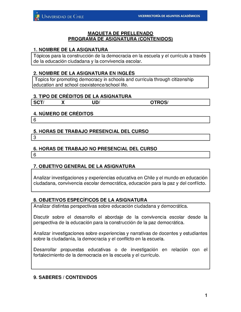 "Electivo: Tópicos para la construcción de la democracia en la escuela y el currículo a través de la educación ciudadana y la convivencia escolar."