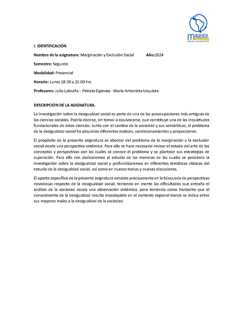 | Descripción | Programa Curso Marginación y Exclusion Social 2024 | |