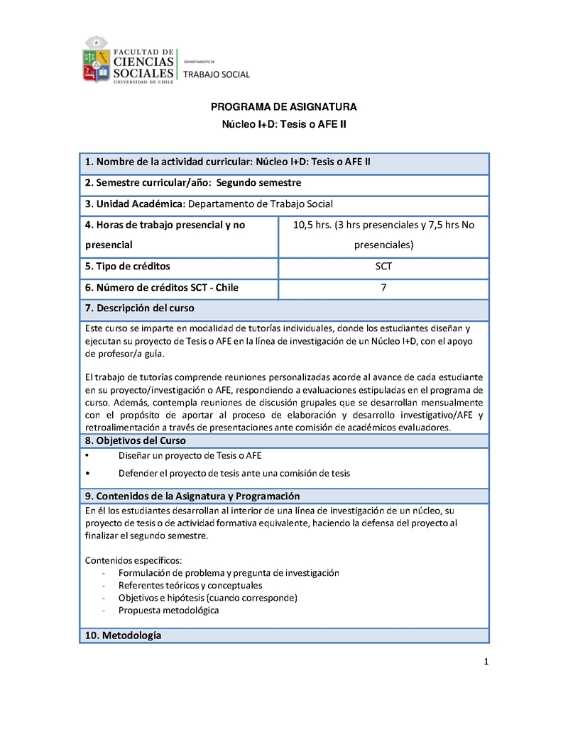 | Descripción | Presentación Nucleo I+D: Tesis o AFE II | |