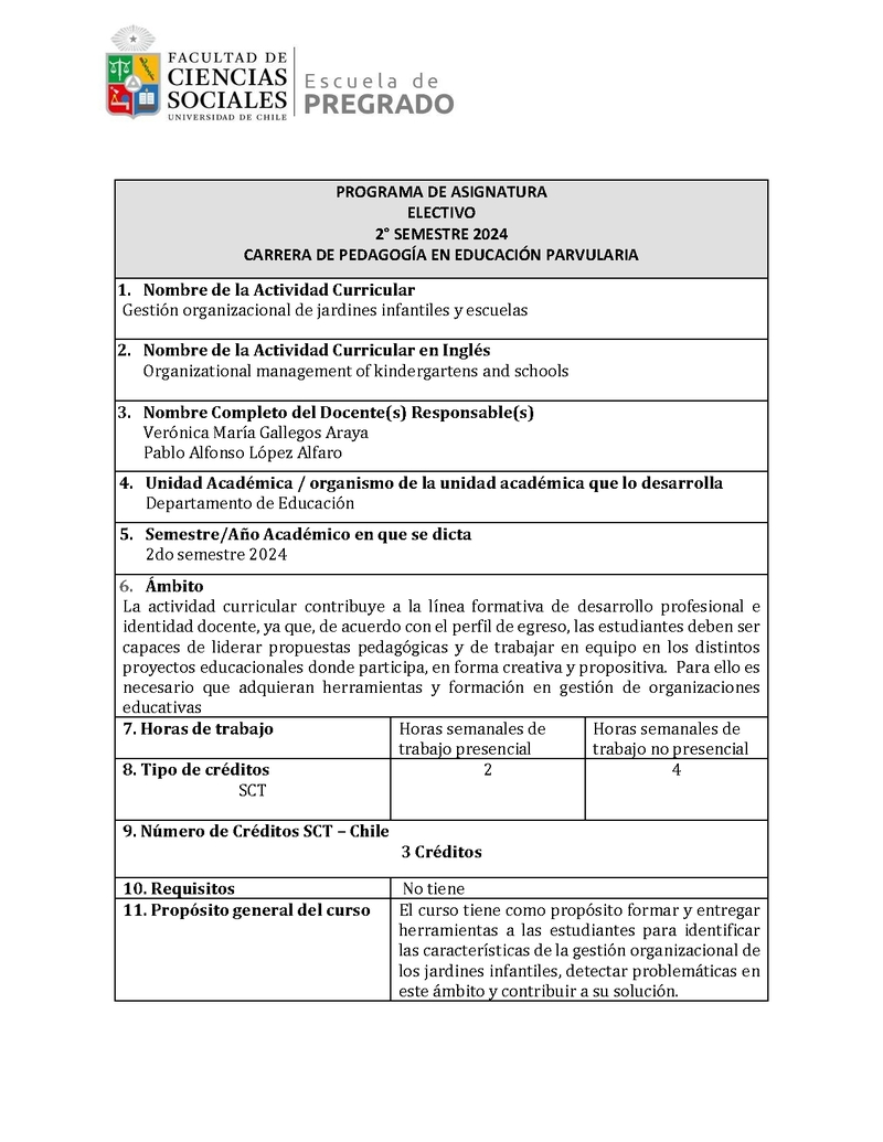 PV00082-1 Electivo de licenciatura: Gestión organizacional de jardines infantiles y escuelas 2024, Segundo Semestre