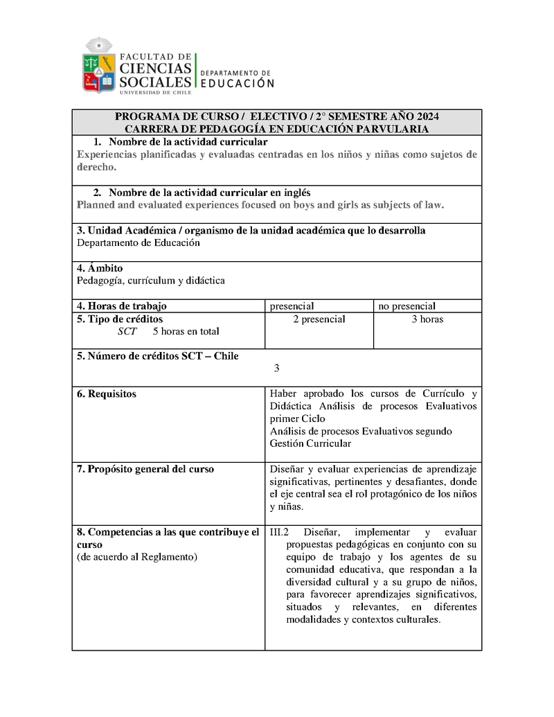 PV00089-1 Electivo de licenciatura: Experiencias planificadas y evaluadas centradas en los niños y niñas como sujetos de derechos 2024, Segundo Semestre
