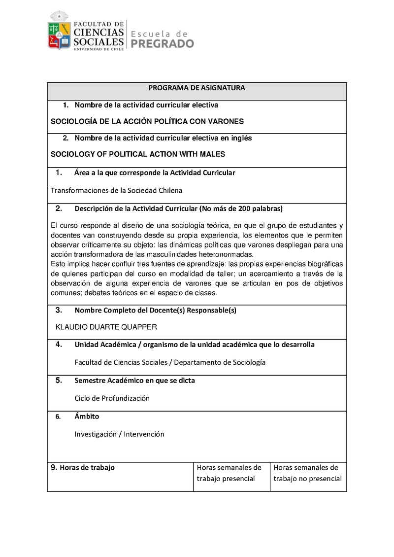 SOC01143-1 Electivo de Transformaciones de la Sociedad Chilena - Sociología para la acción política con varones 2024, Segundo Semestre