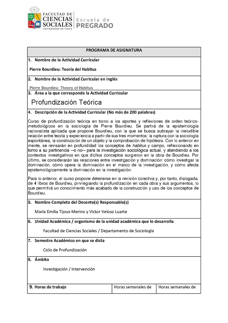 SOC01212-1 Electivo de Profundización Teórica - Pierre Bourdieu: Teoría del Habitus 2024, Segundo Semestre