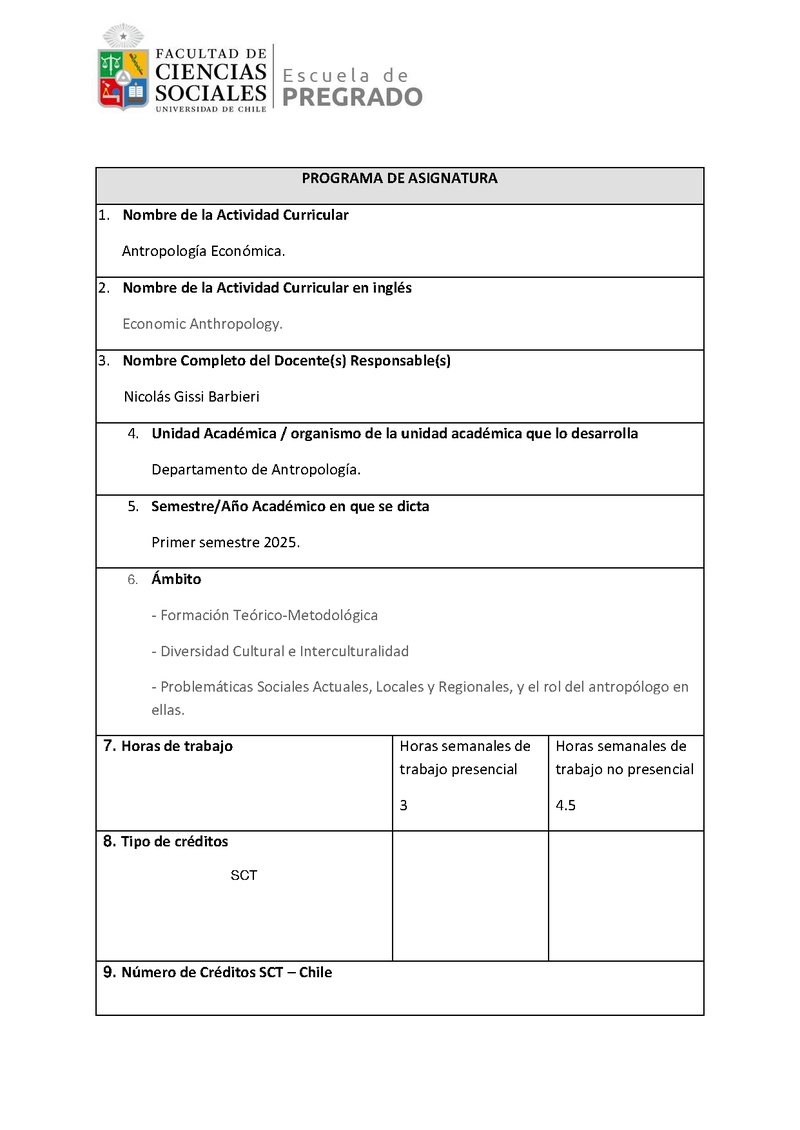 ANT00095-1 Problemas Teóricos en Antropología Social I: Antropología Económica 2025, Primer Semestre