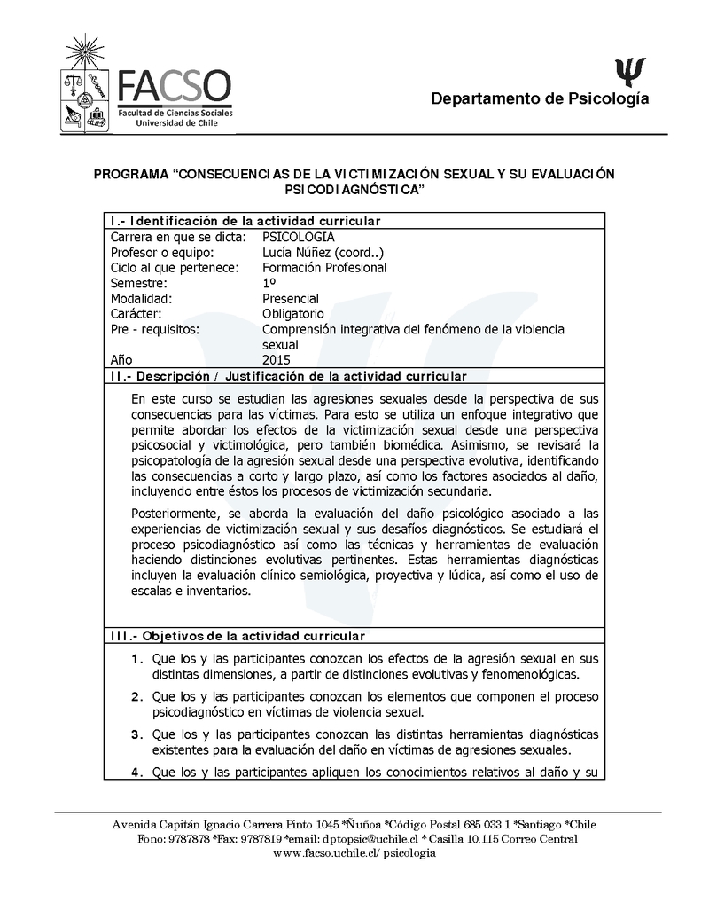 DP03014-1 Consecuencias de la Victimización Sexual y su Evaluación Psicodiagnóstica 2025, Primer Semestre