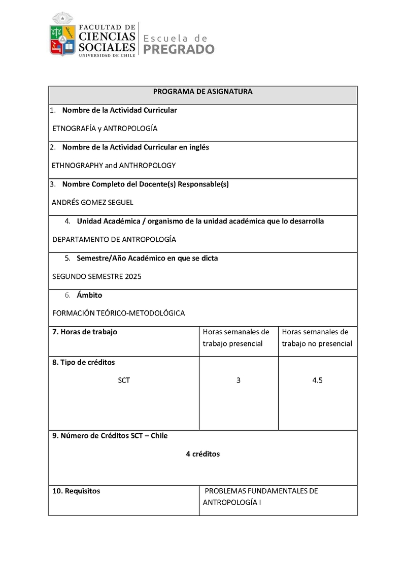 ANT00022-1 Electivo Especialización A. Social: Antropología y Etnografía 2025, Segundo Semestre
