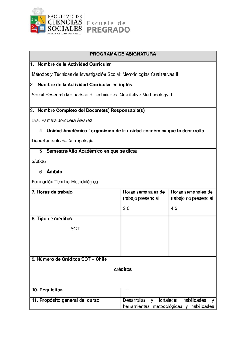 ANT00085-1 Métodos y Técnicas de Investigación Social IV: Métodos Cualitativos II 2025, Segundo Semestre