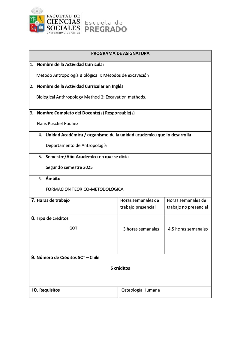 ANT00101-1 Método Antropología Biológica II: Método de Excavación 2025, Segundo Semestre