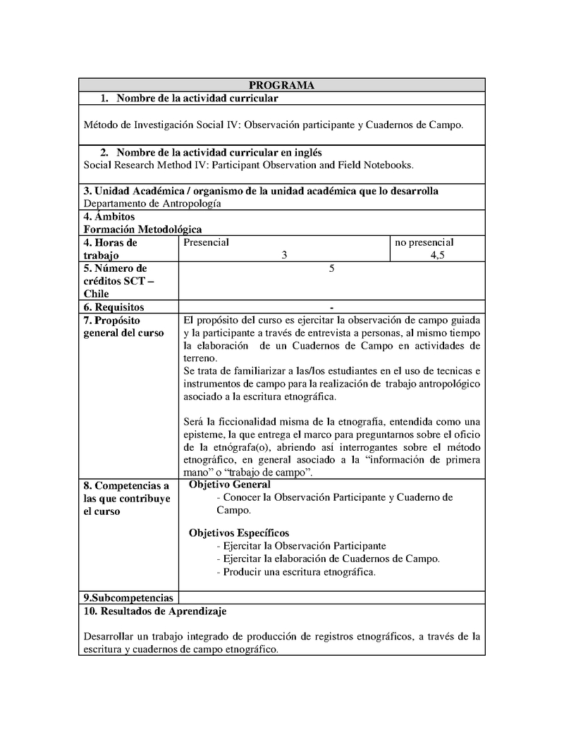ANT00155-1 Métodos y Técnicas de Investigación Social I y IV: Observación Participante y Cuaderno de Campo 2025, Segundo Semestre