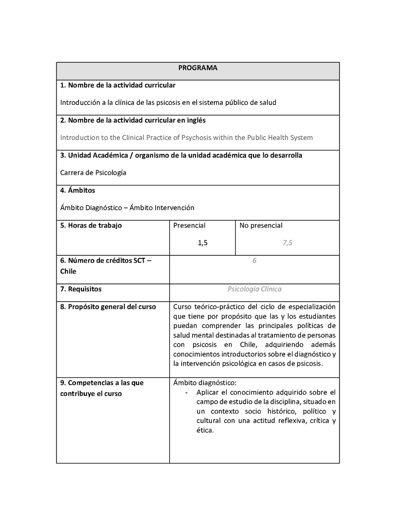 PSICLP25-1 Introducción a la clínica de las psicosis en el sistema público de salud 2025, Segundo Semestre