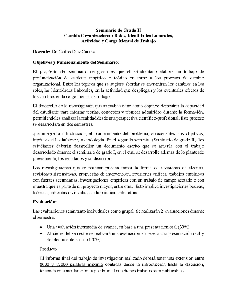 PSISG107-1 Seminario de Grado 2 Cambio Organizacional: Roles, Identidades Laborales, Actividad y Carga Mental de Trabajo 2025, Segundo Semestre