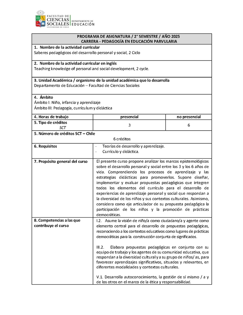 PV00019-1 Saberes Pedagógicos del Desarrollo Personal y Social, 2 Ciclo 2025, Segundo Semestre