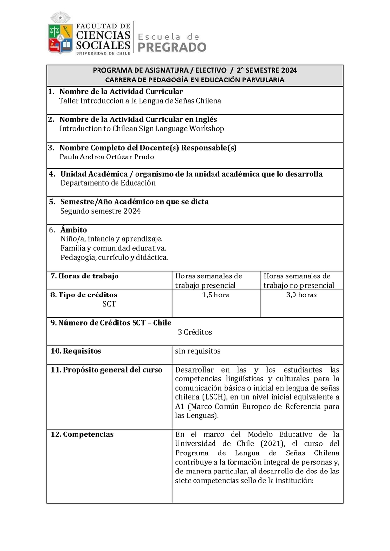 PV00092-1 Electivo Licenciatura: Introducción a la Lengua de Señas Chilena 2025, Segundo Semestre