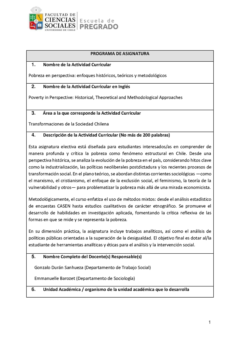 SOC01307-1 Electivo - Pobreza en Perspectiva: Enfoques Históricos, Teóricos y Metodológicos 2025, Segundo Semestre
