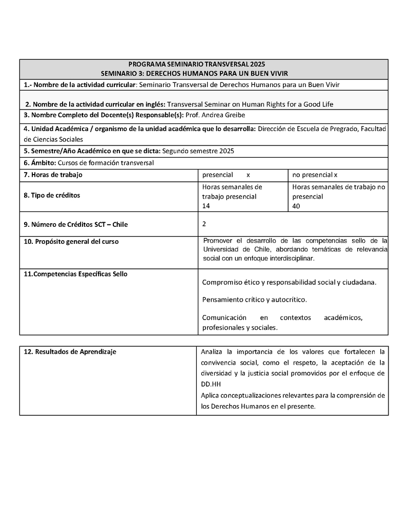 TRNSV00015-1 Seminario Tranversal de de Derechos Humanos para un Buen Vivir 2025, Segundo Semestre